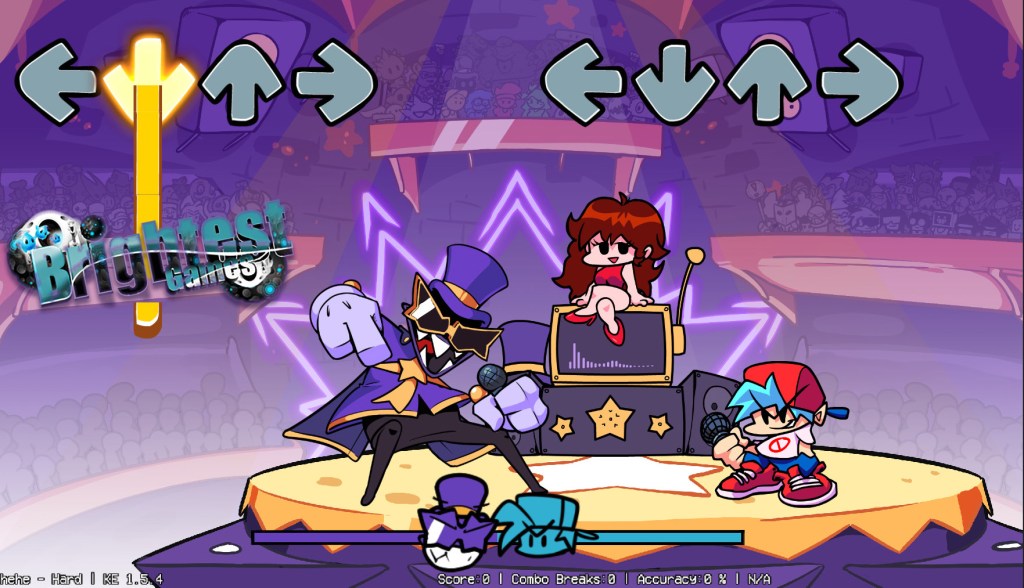 And join a mod of Friday Night Funkin where Violastro challenges Boyfriend to a rap battle on stage in front of a live audience of other FNF characters, indie characters, and many others on the other side of the television screen!